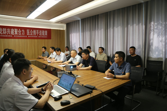 颜东升一行到社区向阳花驿站进行了参观,听取了医务人员关于职工健康和看诊福利的介绍。随后到社区义诊处进行参观。