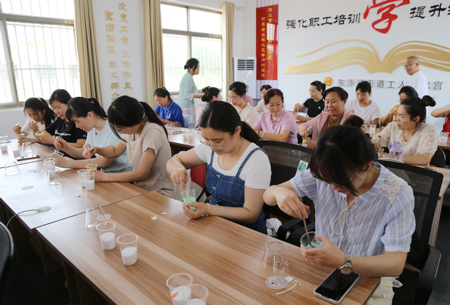 为更好地服务职工,帮助大家舒缓情绪、释放工作压力,5月24日,东沙河街道总工会联合滕州市工人文化宫在街道工人文化宫开展了手工香薰蜡烛DIY活动。街道辖区30多名职工参加。