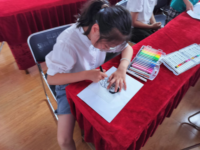 首先,志愿者生动形象的为大家讲解了党史,老一辈共产党人的艰辛历程,在场的每一位小朋友都听得非常认真。绘画开始前,志愿者为小朋友们准备了水彩笔、画纸,认真讲解绘画需要注意的事项,用心指导他们作画。活动中,小朋友们充分发挥自己的想象力,拿起画笔仔细勾勒和描绘。他们变身“小画家”,用稚嫩的笔法、绚丽的色彩、流畅的线条画出了他们对古诗词的理解,童趣和诗意尽数跃然纸上。“诗中有画,画中有诗”,小朋友们用手里的画笔解读诗词世界,感受古诗词的无穷魅力。
