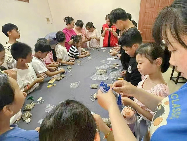 益智手工强思维。端午节期间,东沙河街道党村新时代文明实践站,孩子们围坐在一起,开展“端午巧手缝香包”活动。在志愿者的指导和家人的陪伴下,孩子们认真剪裁、缝制,亲手填充材料,制作出一个个精美的香包。此次活动不仅锻炼了孩子们的动手能力,让孩子们学会使用针和线,收获了成长的快乐,更让孩子们感受到了传统节日氛围,在心中埋下了热爱和传承中国传统文化的种子。街道新时代文明实践所积极组织各实践站结合时节和节日,开展猜灯谜、做灯笼、手工串珠、剪纸、绘画、捉鱼、插花等活动,让孩子们动手又动脑,益智又增识,课余生活也变得更加充实、更有意义。