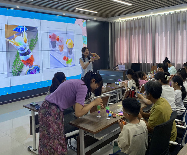 活动现场,志愿者以生动有趣的方式寓教于乐,用爱陪伴孩子的成长。一次独特的冰激凌DIY活动将现场气氛充分活跃。孩子们在志愿者和家长的指导下,充分利用彩泥、吸管等材料,亲手制作出属于自己的彩色冰激凌。