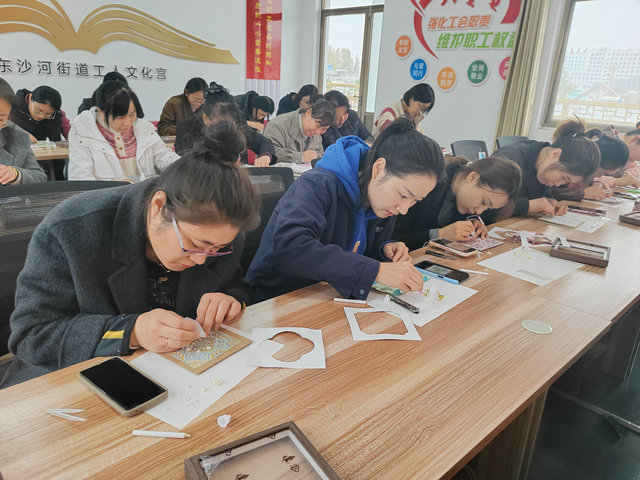 11月7日,东沙河街道总工会携手滕州市工人文化宫精心举办了一场非遗宋锦珍珠画手工体验活动,让职工们在指尖技艺中感受传统文化的魅力。