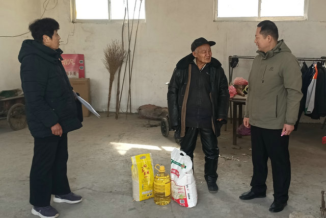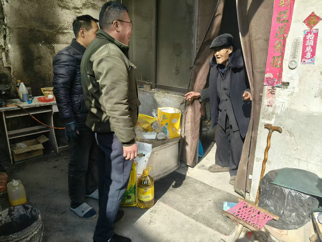 走访人员到困难群众家中,送上米、面、油等慰问品,向他们致以新春的祝福与诚挚关怀,主动听诉求、拉家常、问冷暖,反复叮嘱他们一定要保重身体,注意取暖、用火、用电安全,安心过节。