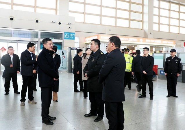 赵炜、李涛一行实地督导调研了滕州东站春节期间春运安全保障、应急值守、市容秩序等情况,听取了禁燃禁放、巡查值守等工作情况汇报。向一线值守人员表示了诚挚的问候和感谢。强调春运工作关系千家万户的团圆幸福,要科学研判客流变化,统筹运力调配,强化安全管理,细化服务举措,全力保障乘客出行便捷顺畅,以热情周到的服务展现城市温度。