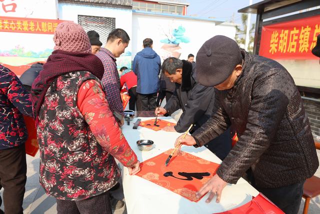 志愿者精心布置了活动现场,挑选了香皂、毛巾、抽纸等生活用品。村民们对摆满一地的物品兴趣满满,大家依次排队套圈,只见套圈飞快地抛出,现场气氛热烈。另一边,书法爱好者们提笔蘸墨,“欢声笑语贺新春,欢聚一堂迎新年”“天地和顺家添财,平安如意人多福”……一句句祝福跃然纸上,一幅幅对联在冬日暖阳下熠熠生辉。在接过寓意着吉祥、散发着墨香的春联和福字时,老人孩子们笑得合不上嘴,眉眼之间满是欣喜和感动,喜悦之情溢于言表。