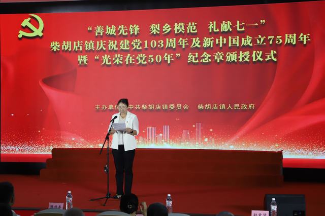 活动中,市墨子研究中心主任陈伟泰致辞;柴胡店镇党委副书记、镇长赵素贤宣读了《关于颁发姬长敏等15名同志“光荣在党50年”纪念章的决定》,市墨子研究中心主任陈伟泰依次为纪念章获得者代表佩戴纪念章、发放党员政治生日卡;柴胡店镇党委委员、组织委员、统战委员吴莹宣读了柴胡店镇先进工作者名单,市老干部服务中心主任张坤、市总工会党组成员、副主席杨琴为先进工作者颁发了证书和奖品;柴胡店镇党委书记韩建行、镇党委副书记、镇长赵素贤为2024年新发展党员佩戴了党徽、并发放了新党员入党纪念卡,现场全体党员重温入党誓词;“光荣在党50年”纪念章获得者代表刘理臣讲述了入党初心故事;柴胡店镇党委书记韩建行总结讲话。