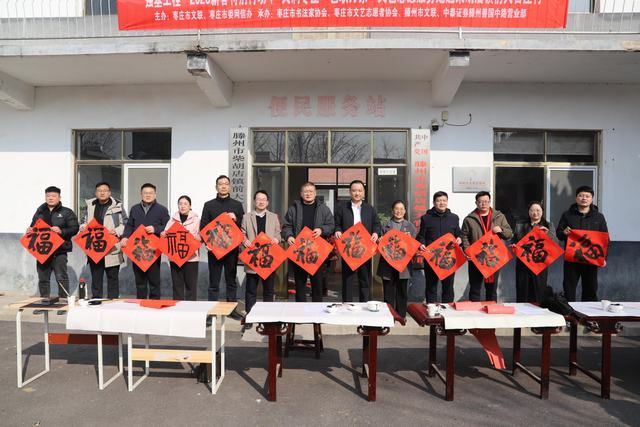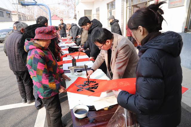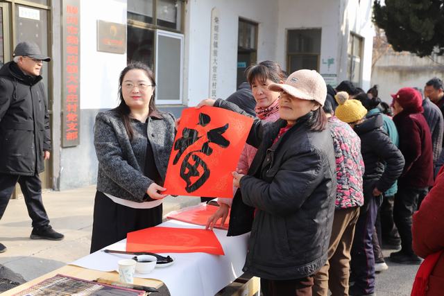 走访期间,枣庄市文联、枣庄市委网信办联合主办的“强基工程”2026新春特别行动|“文润枣庄·艺联万家”文艺志愿服务活动同步在前大官庄村委会前广场举行。书法家到村挥毫泼墨为现场村民送上满载吉祥寓意的春联、福字,整个会场充满了浓浓的年味。