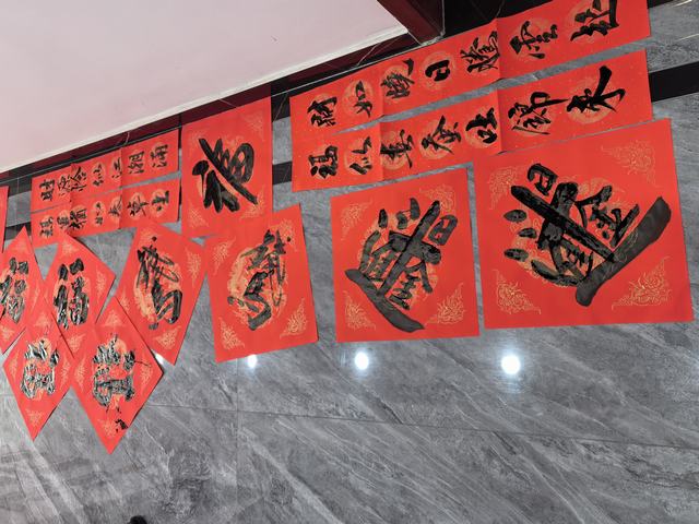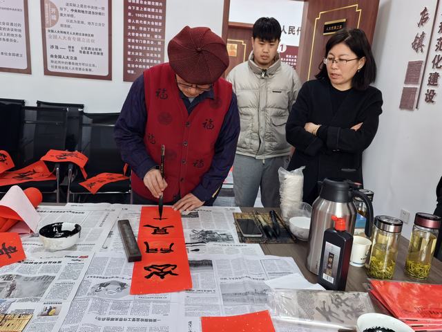 活动采取“主会场+分会场”的形式,分别走进基层企业、便民服务大厅以及村级实践站等集中区域,实现服务全覆盖、祝福无死角,让不同群体的职工群众都能感受到浓浓的年味与关怀。活动现场暖意融融、墨香四溢,书法爱好者们凝神聚力、挥毫泼墨,笔走龙蛇间,一个个饱满圆润、苍劲有力的“福”字跃然纸上,一幅幅寓意吉祥、对仗工整的春联新鲜出炉,字里行间映衬出浓浓年味,也为职工群众送上了新春的美好祝愿。