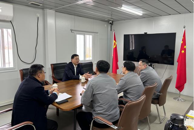 孔维刚一行来到山东鲁坤矿产资源开发有限公司,深入生产一线,实地察看节后复工复产、安全生产责任落实、设备运行等情况。随后与企业负责人及相关管理人员进行座谈,详细了解企业基本情况、生产经营现状、项目建设规划及存在的困难诉求等情况。