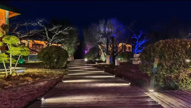 走进梨园,暖黄灯带沿着古树枝干蜿蜒延伸,将虬劲的枝丫勾勒成灵动的剪影,仿佛为百年老树披上璀璨华裳。步道两侧,梨花主题灯饰错落点缀,暖光与冷光交织错落,时而温柔静谧,时而绚烂灵动,漫步其间,步步皆是诗意。景区广场大门大型激光光影秀精彩上演,灯光与音乐、实景完美融合,动态呈现梨园四季更迭、梨花绽放的盛景,让游客在赏景之余,感受传统文化的独特魅力。