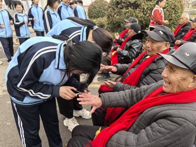 活动现场,柴胡店中学的同学们为老人们细心佩戴围巾,送上水果、牛奶等慰问品,并力所能及地为老人剪指甲、梳头发、整理内务,用贴心的举动为老人们送去温暖与关怀。活动尾声,志愿者与同学们共同为老人们表演文艺节目,在温馨的《外婆的澎湖湾》歌声中,本次志愿服务活动圆满落下帷幕。
