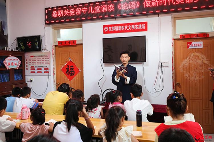 7月29日,滕州市东郭镇新时代文明实践所、市志愿者协会联合东郭中心卫生院在市关爱留守儿童成长基地、东郭镇前明村新时代文明实践所家庭站开展暑期关爱留守儿童“以一颗诗心慢度生活”宣讲志愿活动,大学生志愿者、前明村青少年儿童参加活动。