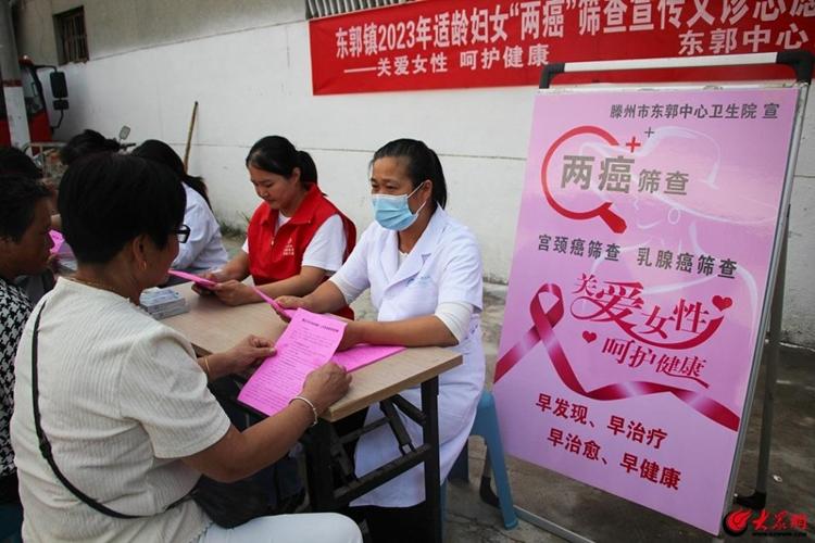 为提高辖区妇女对宫颈癌和乳腺癌相关知识的认知,推动“两癌”免费筛查工作顺利开展,近日,东郭中心卫生院计生服务站医务人员联合东郭镇新时代文明实践所在中村社区开展了适龄妇女“两癌”免费筛查宣传志愿者服务活动。