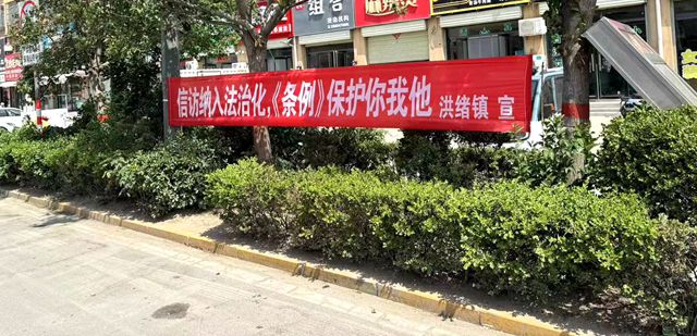 为进一步向全镇居民群众广泛解读政策、普及信访知识、提供咨询服务,全面推进信访工作法治化,不断推动信访工作高质量发展。5月17日,洪绪镇信访工作岗联合洪绪司法所、洪绪派出所等部门开展《信访工作条例》暨信访工作法制宣传月活动。市信访服务中心主任马效磊到活动现场进行指导;镇党委副书记付文哲及相关部门负责同志、工作人员参加活动。