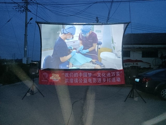 一块幕布、一个投影仪,随着机器的启动,放映机发出的光瞬间点亮了夜晚的广场,聚集在荧幕下的村民越来越多,大家逐渐安静下来,沉浸于生动的电影世界中。宽大的银幕,清晰的画面,大家拉着家常,孩童们在一起嬉笑玩闹,大家全身心享受着露天电影带来的温馨和乐趣,欢快的笑声充盈着乡村的夜晚。