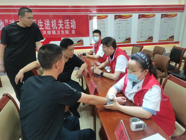 为进一步贯彻落实“四送四进四提升”健康义诊活动,持续增进人民群众健康福祉,提升机关干部职工健康意识,提高机关干部职工健康水平,6月4日,洪绪镇卫生院组织内科、中医科、口腔科等健康义诊团队走进洪绪镇镇政府开展“家医服务惠万家,健康相伴你我他”健康义诊进机关活动,洪绪镇新时代文明实践所、卫生健康岗、医疗保障岗联合参加活动。