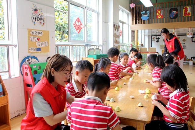 为弘扬中华优秀传统文化,6月5日,在端午节来临之际,洪绪镇新时代文明实践所联合团委、洪绪镇中心幼儿园开展端午节手工DIY活动,带孩子们学文化、知端午、做“粽子”,体验我国传统文化带来的乐趣。