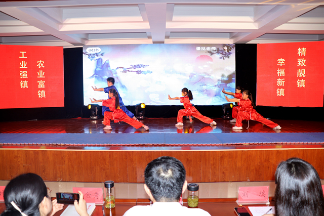 文艺演出中,通过来自镇中心幼儿园的教师们带来了舞蹈《在灿烂阳光下》;镇中心小学的师生们带来了朗诵《彩色的中国》;龙庄小学的师生们带来了武术表演《武英飞扬》;镇中心幼儿园的教师们带来了朗诵《月光下的中国》;洪绪中学的师生们带来了舞蹈《少年中国说》。现场还进行了党史、党纪知识有奖问答环节,进一步激发了党员干部党史、党纪学习的热情。