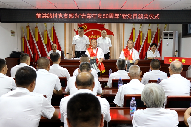 “光荣在党50年”的老党员同志是党史的亲历者和书写者,是鲜活的价值观,是生动鲜活的教科书。洪绪镇前洪绪村、杨园村组织举办了“光荣在党50年”纪念章颁发仪式,老党员代表在年轻党员的见证下领取了纪念章,全体党员重温了入党誓词,老党员代表在支部会议上进行了发言,并向老党员颁发了纪念品。洪绪镇龙庄村组织慰问老党员,向老党员颁发了慰问品,送去了党组织的关怀。