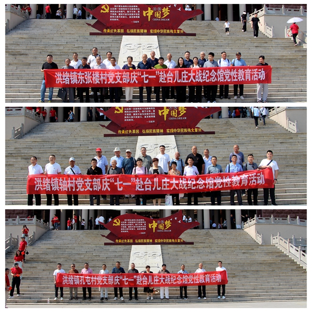 洪绪镇各基层党组织结合庆七·一系列活动,积极推进主题教育预热,大力营造学思想、强党性、重实践、建新功浓厚氛围。轴村党总支组织东张楼村、孔屯村和轴村党支部党员参观台儿庄大战纪念馆、重温入党誓词等方式追寻红色足迹,感悟先辈们用鲜血和生命铸就的担当与责任。洪绪镇龙庄村党支部组织年轻党员开展卫生大扫除活动,为美丽家园装扮一新。洪绪镇中心幼儿园、张楼幼儿园、颜楼幼儿园开展了“庆七一”系列主题活动,把党的历程、光辉伟业通过PPT、故事分享、观看视频等形式搬进了课堂,教育引导幼儿从小坚定听党话、跟党走的决心,努力实现德智体美劳全面发展,用红色文化涵养正气,用优良传统滋养人心。
