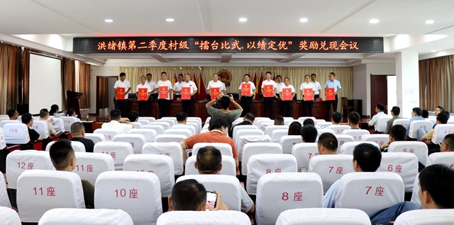 会上,党委副书记付文哲宣读了“洪绪镇第二季度‘擂台比武·以绩定优’考核结果”;被评定为第二季度村级“擂台比武·以绩定优”一类班子的村支部书记上台领取了第二季度绩效。