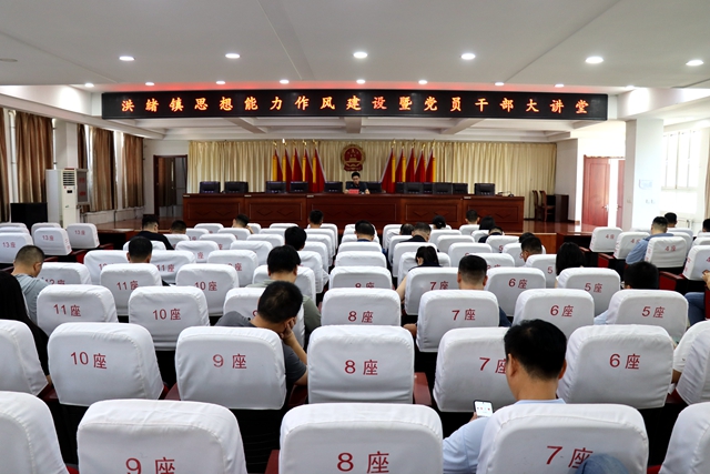 8月18日,洪绪镇在北二楼会议室组织开展思想能力作风建设暨党员干部大讲堂活动。全体领导干部、全体机关干部,各村党支部书记,驻村“第一书记”参加活动。