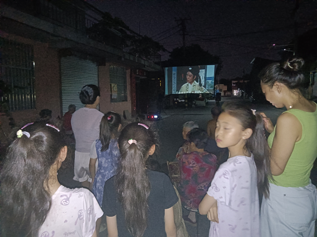 “放电影啦!放电影啦!”每到夜幕降临,镇内各村的新时代文明实践广场上,村民们或坐或站,自带小板凳,三五成群地聚在“小屏幕”前,重温怀旧氛围。大家围坐在一起被精彩的剧情深深吸引,边看电影、边讨论,小孩子们嬉笑打闹着,露天电影唤醒了村民的集体记忆,欢声笑语充盈着满载文化气息的乡村夜晚,现场气氛热闹又和谐。银幕之光丰富了群众的精神生活,也成了传递正能量的‘文化纽带’,涵养文明乡风的“移动课堂”,照亮了美丽乡村。