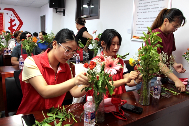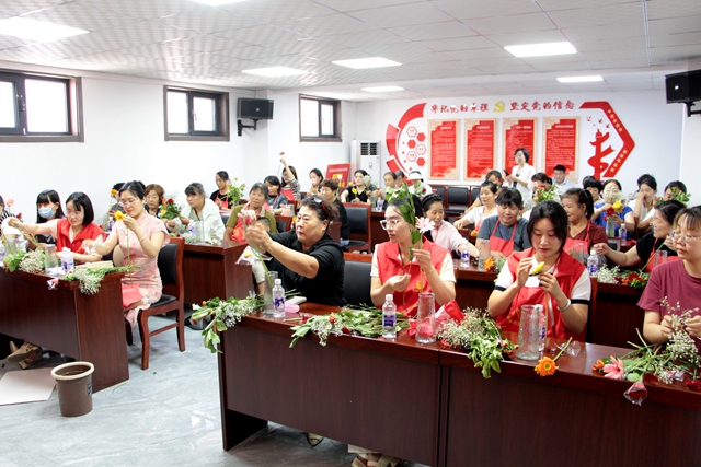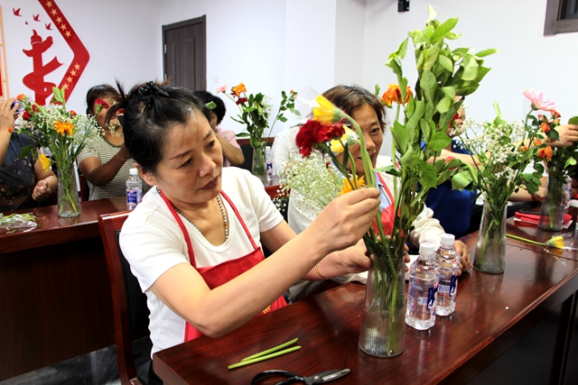 活动分为两大环节。一是技能培训,讲师围绕家庭清洁、收纳整理、绿植养护展开实操教学。二是插花体验,老师讲解插花知识并示范,大家动手创作花艺作品,丰富精神生活。