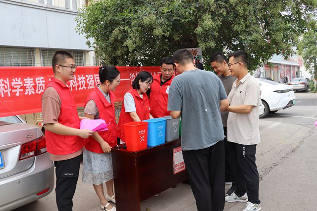 在镇政府驻地,工作人员设立的科普知识宣传台,吸引来往群众驻足。志愿者以环保知识为切入点,向现场群众普及垃圾分类、回收知识,并通过互动卡片,分享节能减排小妙招,将科学知识转化为通俗易懂、实用好用的生活智慧。志愿者走进沿街商铺,宣传《科普法》,结合社会热点,普及食品安全、用电安全、文明经营等内容,传递科学观念,提升科学素养。