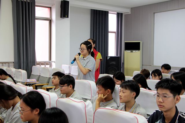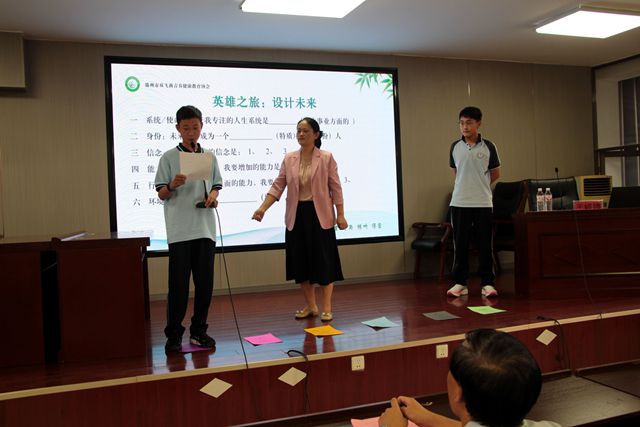 讲座活动中,王婷婷老师以小故事开篇,通过互动提问的方式,引入“思维模型”,帮助学生打破思维方式,全方位认识自我,清晰人生定位,找到人生意义。真正的“立志”源于健康的心理状态和清晰的自我认知。王老师引用古往今来立志成才的事例,引导青少年学生要立志、成才,努力成长为担当民族复兴大任的时代新人;同时结合思维导图,阐述认识“立志”与“心理健康”的关系,心理健康是“发动机”,志向是“方向盘”,鼓励大家培养成长型思维,学会积极归因,培养良好心态,助力人生启航。讲座期间,王老师结合自身例子,演示自己的规划图表作为范例,向在场学生发放互动问卷,带领学生绘制“我的英雄之旅——人生规划图”框架暨“我想成为什么样的人、我该怎么做”,并邀请学生上台分享互动,引导他们将立志变为路线图,聚焦目标、制定路径、落实行动,将梦想变为可执行的步骤。讲座最后,王老师告诉学生,目标指引人生方向,我们想要的任何东西,都需要努力去换取,作为学生,要珍惜时间、刻苦学习,长大才能追求自己的人生理想,实现自身的价值!