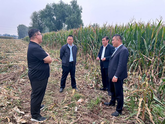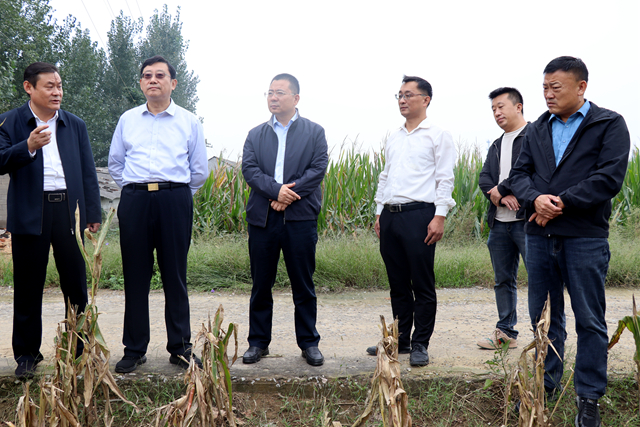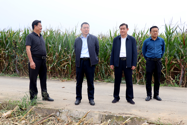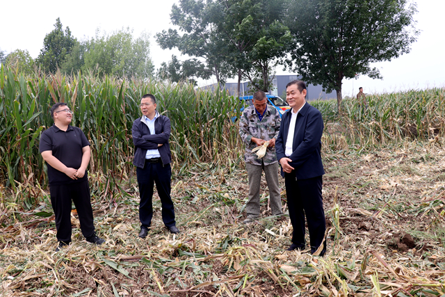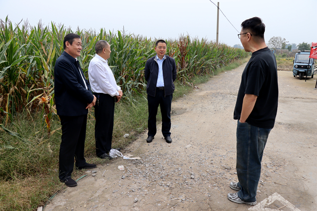 张波一行先后来到团结村、前洪绪村、龙庄村、金庄村、新丰村、陈楼村等进行实地查看。走进田间地头与村干部深入交流,详细了解玉米亩产、收割进度、粮食收购价格及当前面临的困难等情况。