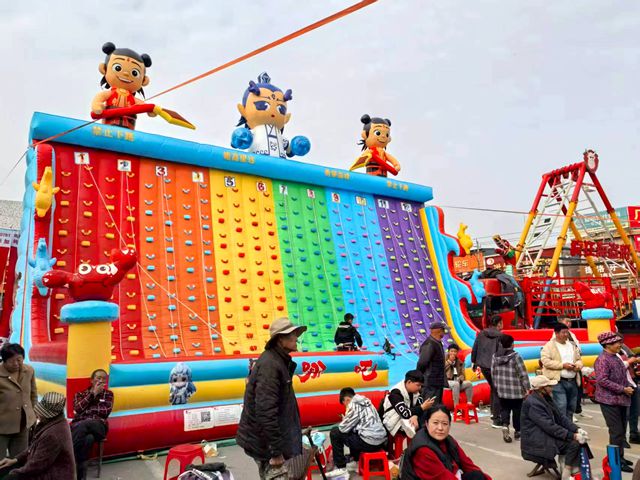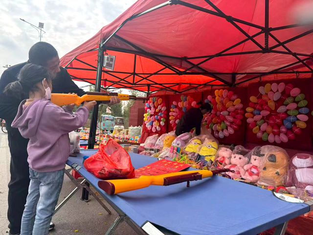 在人流中前行,耳边是四面八方的吆喝声、欢笑声、孩童的嬉闹声。目光所及,是琳琅满目的摊位、商品。 从滋滋作响的烤肉、金黄喷香的炸货,到焦香扑鼻的烤栗子、酸甜可口的糖葫芦,香甜酥脆的各式糕点,每一口都是童年的记忆;精美的手工艺品,传统的手作器具,竹编的筐篓、手工的木凳、铁打的农具都凝结着最实用的生活智慧。旋转的风车,转动的木马,空气城堡里的嬉闹,每一步都是风景,每一眼都是民俗。