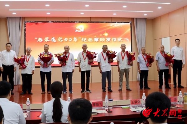 “铭初心·岁月荣耀”:致敬老党员,传承红色基因在第一篇章中,界河镇党委书记王学焱,党委副书记、镇长褚晓飞为老党员代表们颁发“光荣在党50年”纪念章和政治生日纪念卡,向他们传递党的关怀与温暖。随后,老党员代表郑广斌深情讲述了自己的入党故事,带领大家回顾那段激情燃烧的岁月,感受老一辈党员对党的无限忠诚与坚定信仰。