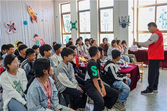 活动中,志愿者围绕飞机的种类和用途、无人机的基本构造和飞行原理、航空航天技术在国防建设中的应用等内容,为孩子们带来了一场生动有趣的国防科技知识讲座。