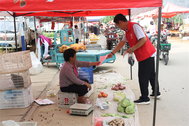 活动现场,志愿者通过悬挂宣传横幅、发放宣传资料等形式,围绕产业兴旺、生态宜居、乡风文明、治理有效、生活富裕等乡村振兴战略,向前来赶集的群众及摊主进行理论宣传和政策解读,使村民了解乡村振兴政策、支持乡村振兴政策,进而融入乡村振兴、助力乡村振兴。