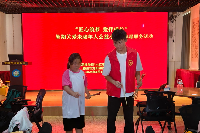 8月5日,龙阳镇团委联合枣庄科技职业学院“小红枣”志愿服务队开展“匠心筑梦 爱伴成长”暑期关爱未成年人公益小课堂志愿服务活动。