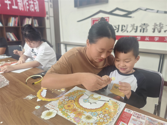 活动现场温馨愉悦,在制作国风簪花头饰时,孩子们发挥奇思妙想,小手灵活地摆弄着材料,有的孩子迫不及待地把做好的簪花头饰戴在头上,脸上洋溢着自豪与喜悦;有的家长和孩子一起设计制作,亲子之间的默契在这一刻充分展现。整个活动现场都被孩子们的活力与热情所填满。