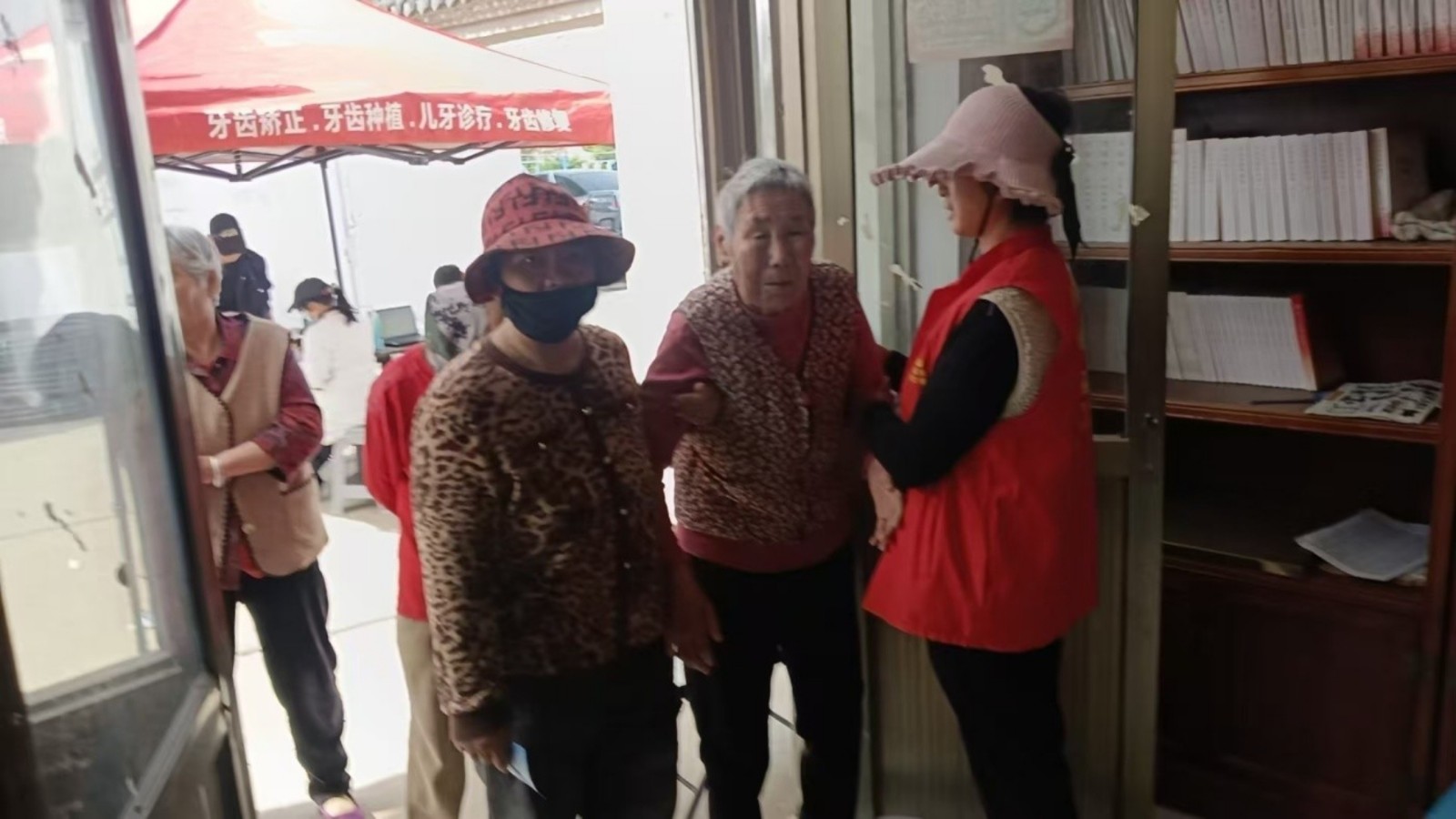 检查现场,志愿者帮助维护秩序,医护人员为村民提供血压测量、心电图检查、中医问诊等多项医疗服务。志愿者们耐心引导村民登记信息、有序就诊,现场秩序井然。