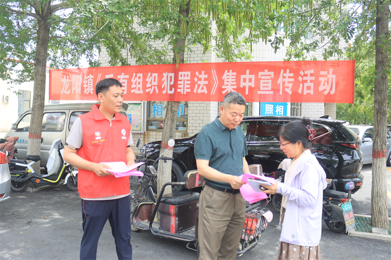 为深入推进常态化扫黑除恶斗争,提高群众对有组织犯罪的防范意识,龙阳镇平安法治办联合派出所、新时代文明实践所共同开展《反有组织犯罪法》集中宣传活动。