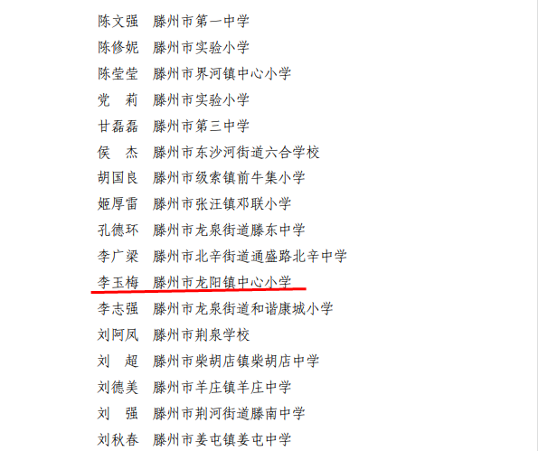 近日,枣庄市人民政府发布《枣庄市人民政府关于表扬全市教育系统突出贡献集体和个人的通报》,其中,龙阳镇龙山小学苗燕老师、龙阳镇龙山屯小学王妍妍老师、龙阳镇龙阳中学王羽凌老师获评“突出贡献教师”,龙阳镇中心小学李玉梅老师获评“突出贡献班主任”。