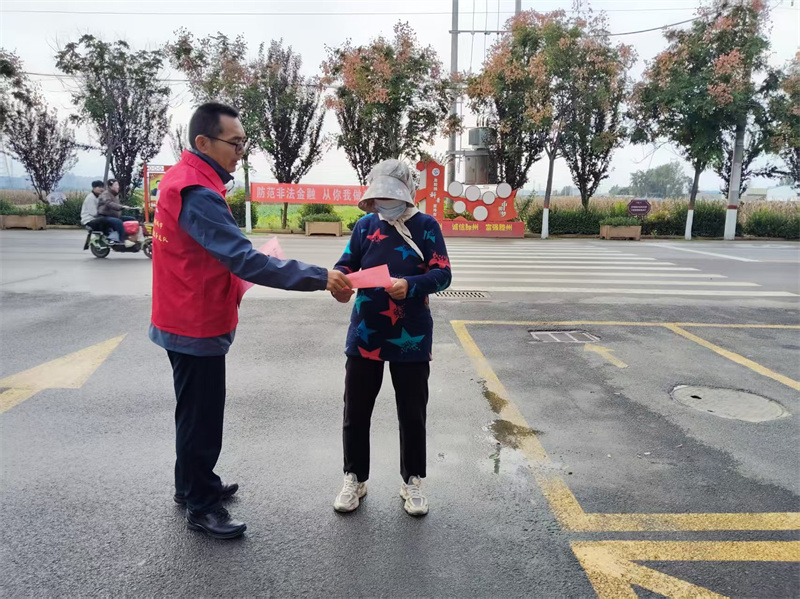 活动坚持“宣传先行、预防为主”的原则,组织志愿者深入党群服务中心、农贸集市、村内街巷等重点区域,通过理论宣讲、发放资料、悬挂横幅等多种方式,根据不同群体的金融知识水平,用通俗易懂的方言揭露非法金融套路,聚焦涉农虚假投资、养老领域金融陷阱、电信网络诈骗等常见风险类型,通过案例剖析引导群众精准识别风险、守护好“钱袋子”。此外,在全镇范围内广泛悬挂“远离非法金融 守护财产安全”“打击非法金融 共建平安家园”等宣传横幅,着力营造“抬头见警示、随处学知识”的宣传氛围。