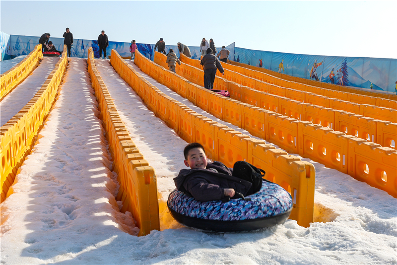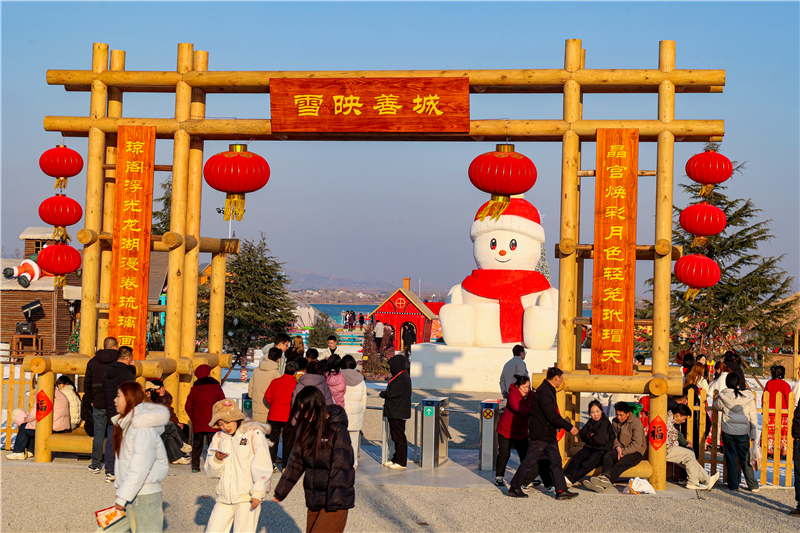 假日里的“龙湖月色”片区化身为欢乐的海洋,各类文旅活动精彩纷呈,人气爆棚。新春灯展璀璨夺目,整个片区流光溢彩、如梦如幻;龙湖岸边的冰雪嘉年华更是备受青睐——雪圈滑道上,游客们飞驰而下,尖叫声与欢笑声在雪地上空交织回荡。亲子坦克项目中,孩子们化身“小小坦克兵”,沉浸式体验模拟驾驶与竞技对战的乐趣。套鸭子、抓鸡等趣味民俗游戏,让成年人重拾童年记忆、尽享纯粹快乐。巨型雪人、雪乡木屋等打卡点宛如童话场景,随手一拍便是新年氛围感大片。夜幕降临,激光水幕秀震撼上演,光影交织间,龙山传说跃然水上,为游客献上一场视听盛宴。持续走高的“流量”,正稳稳地转化为乡村发展的“留量”与“销量”:周边特色农家乐客流如织,农户自产的土特产成为游客争相购买的“香饽饽”,以“旅游热”带动“消费旺”。文旅产业的蓬勃发展,不仅激活了假日经济,更让村民在家门口吃上“旅游饭”、走上致富路,实现村集体经济与农户收入同步增长,乡村振兴的底气更足、成色更亮。
