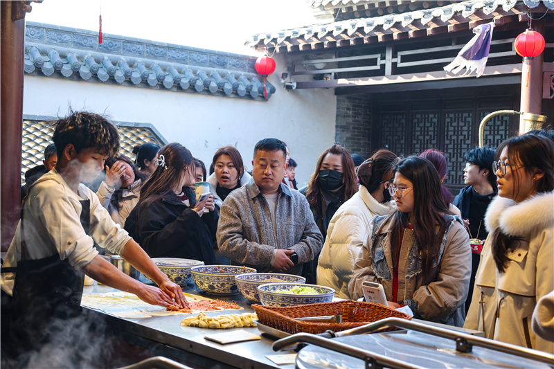 今年春节,龙阳镇旅游业态多点开花,各具魅力。龙山胜境景区内,登高祈福的人群沿着蜿蜒步道拾级而上,在挥洒汗水中寄托新年期许、祈愿平安顺遂。一路之隔的滕州市野生动物园成了亲子家庭的“主战场”:猛兽区里,威风凛凛的非洲狮闲庭信步,憨态可掬的黑熊直立作揖讨食,引得阵阵惊呼;萌宠互动区内,孩子们轻轻抚摸温顺的羊驼,隔着玻璃给赤猴投喂食物,看着小精灵们敏捷地接住果蔬,欢呼声此起彼伏。不远处的龙田茶博园里,却是另一番静谧雅致,游客们品茗赏景、体验非遗,在亲子互动中感受田园慢生活。从动感刺激到温馨亲子,从传统祈福到现代休闲,多元业态让不同年龄段的游客都能找到属于自己的“年味”。