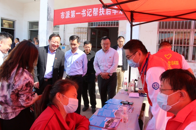 5月8日,枣庄市胸科医院(枣庄市肿瘤医院)党委书记龙奇,纪委书记张士科,党政办主任吕洪涛一行到枣庄市胸科医院(枣庄市肿瘤医院)派驻“第一书记”帮扶村——南沙河镇后辛章村调研并开展党员志愿者义诊活动。南沙河镇党委副书记、镇长李源,党委副书记生加君,党委委员、武装部长、宣传委员陈涛以及有关部门同志参加活动。