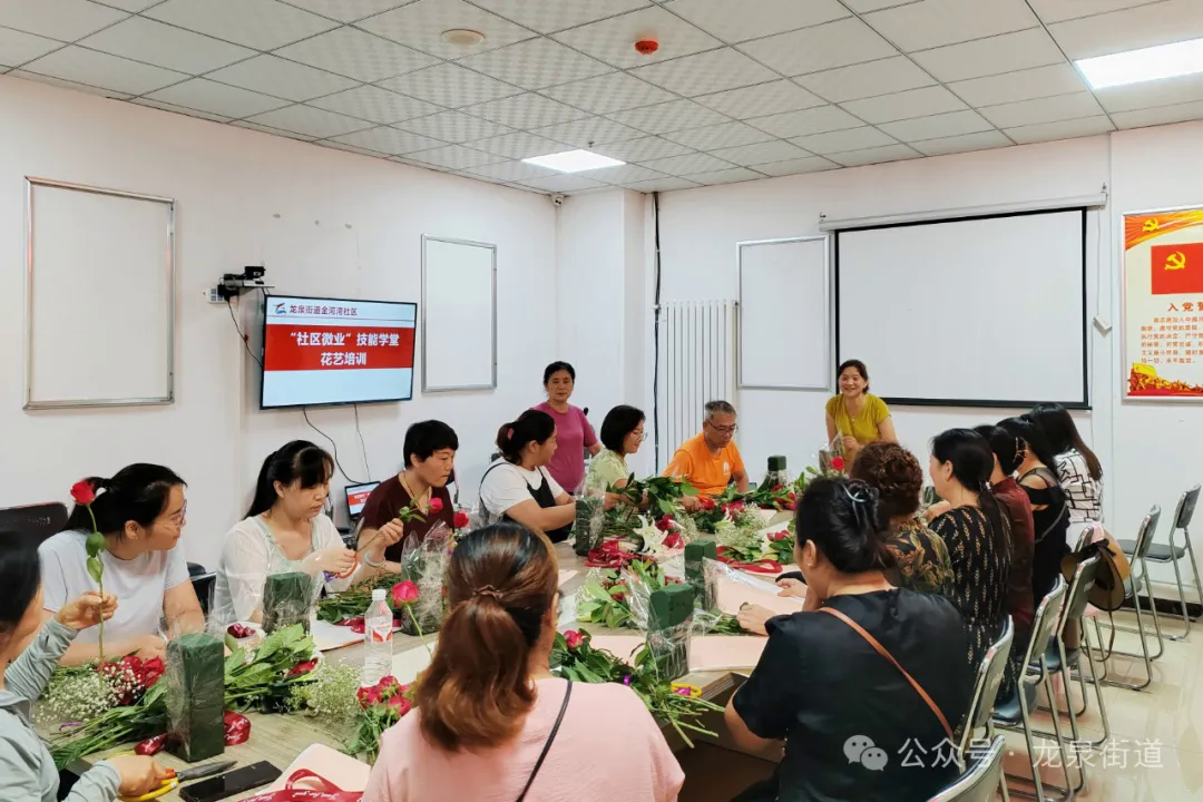 为丰富辖区居民的文化生活,提升居民职业技能,8月9日下午,龙泉街道金河湾社区开展“社区微业”技能学堂——花艺培训活动。