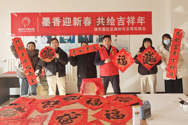 在2025年春节来临之际,为了弘扬中华民族优秀传统文化,丰富“运河大集”文化内涵,营造浓厚的节日氛围。1月19日,善南街道荆善南苑社区新时代文明实践站精心策划并组织了“书写春联送祝福 笔墨生花年味浓”运河大集新春写春联送祝福活动。