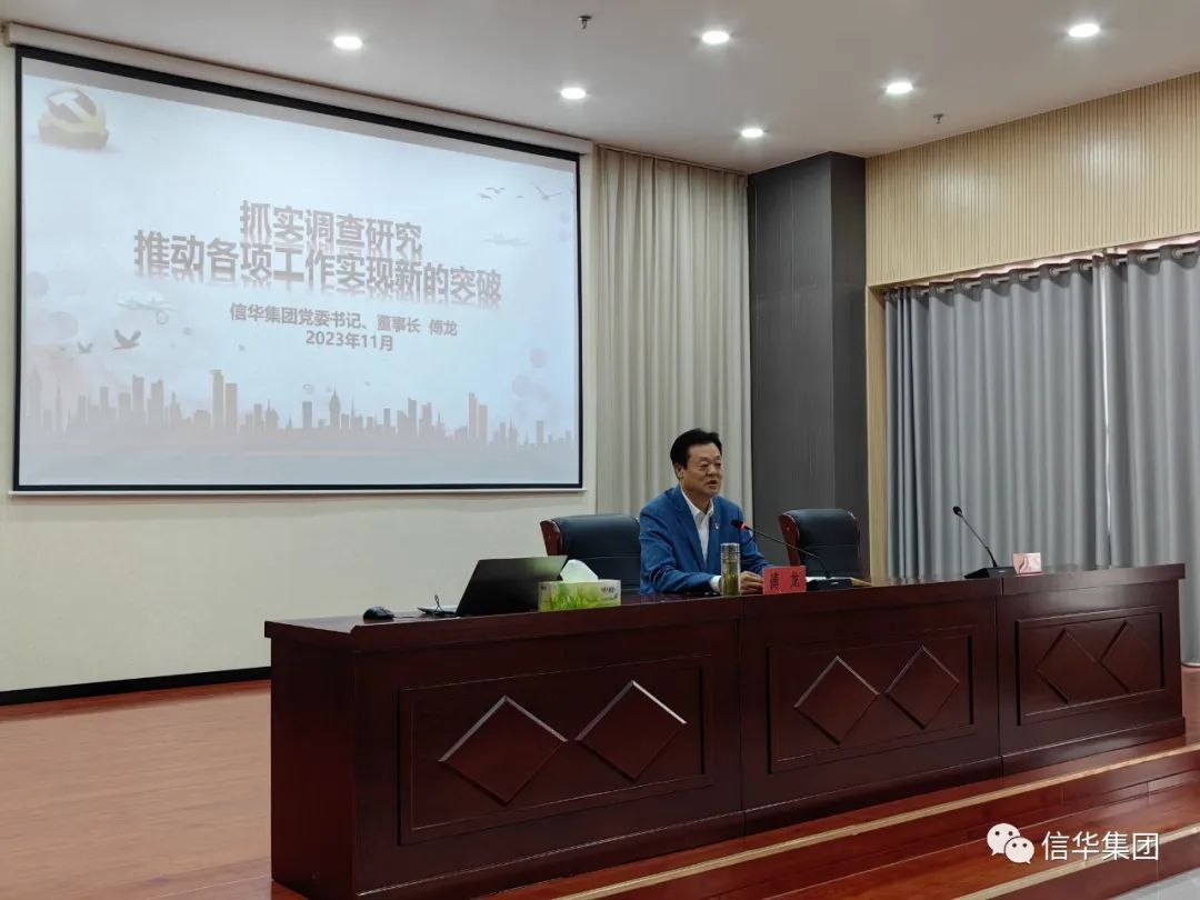 为扎实开展学习贯彻习近平新时代中国特色社会主义思想主题教育,根据工作安排,11月3日下午,信华集团党委书记、董事长傅龙为集团全体党员干部讲授题为《抓实调查研究,推动各项工作实现新突破》的专题党课。