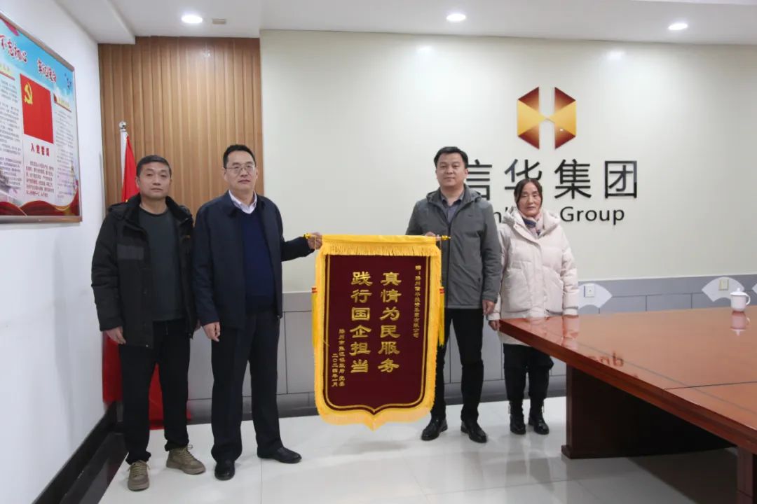 1月10日,张汪镇副镇长朱敏带领孔集村干部一行6人将印有“真情为民服务 践行国企担当”的锦旗送到信华集团,表达全体村民对集团和驻村第一书记帮扶村民促发展的感激之情。集团党委副书记、总经理马骏,党委副书记、监事会主席、工会主席颜亚洲参加座谈会。