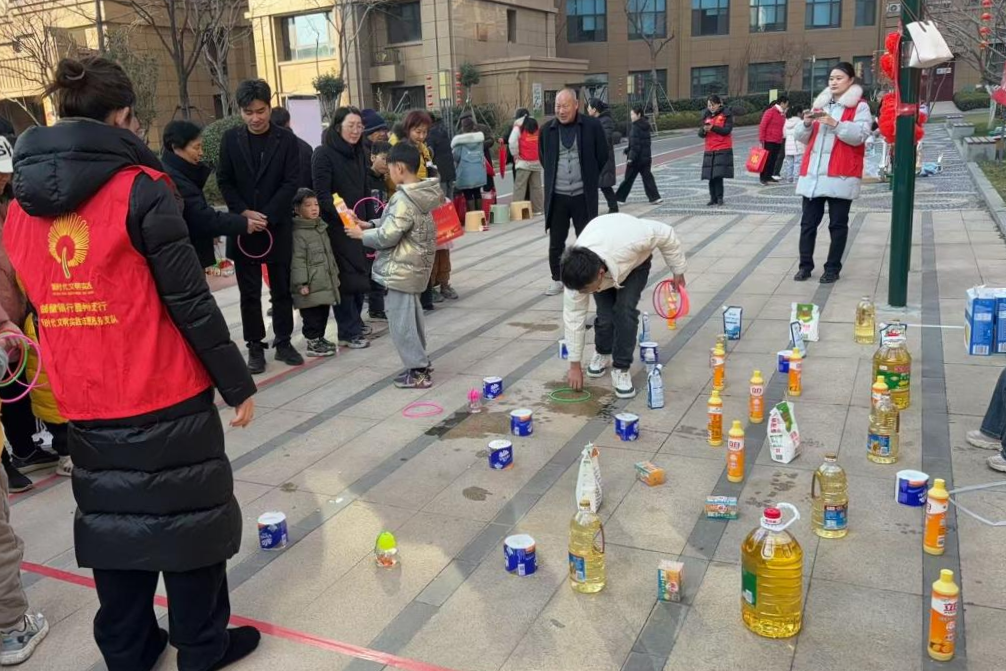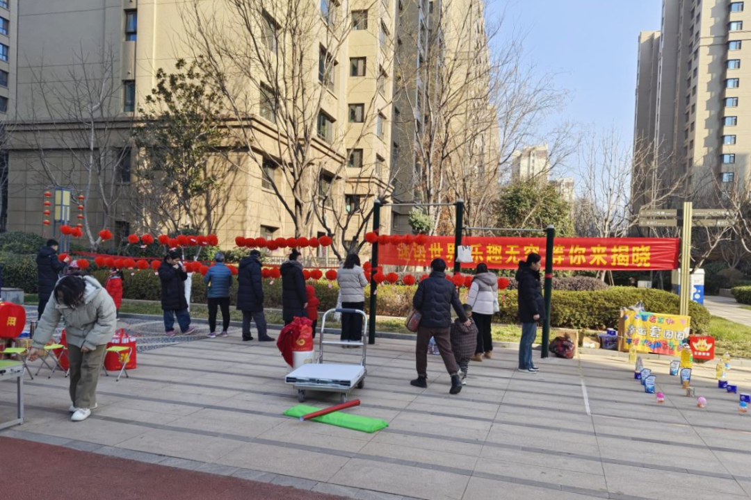 活动当天,工作人员早早布置好场地,悬挂的红灯笼随风飘动,处处彰显着新春的喜庆。此次社区活动设置了众多丰富多彩的活动项目,有考验脑力和手法的猜灯谜套圈活动,也有趣味无限的亲子跳蚤市场。居民们全神贯注地思考每一道谜题,猜中灯谜即可赢取心仪的奖品。活动现场既热烈又温馨,笑声与欢快的交谈声不绝于耳。
