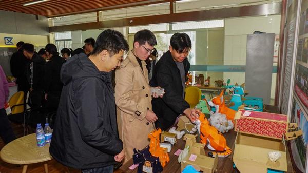活动伊始,与会人员共同欣赏了同学们的手工宠物作品,同学们收集身边的废纸箱,变废为宝,让旧物新生,设计制作属于自己独一无二的“萌宠形象”,每一件作品都充满了创意和温情;其次,来自各二级学院的学生代表依次上台,分享了自己的手工作品,详细介绍了作品的创作灵感、制作过程,并深情讲述了作品背后的故事以及所蕴含的寓意和精神内涵;最后,各二级学院的老师和学生代表进行了现场投票,选出了他们心中的最佳作品。